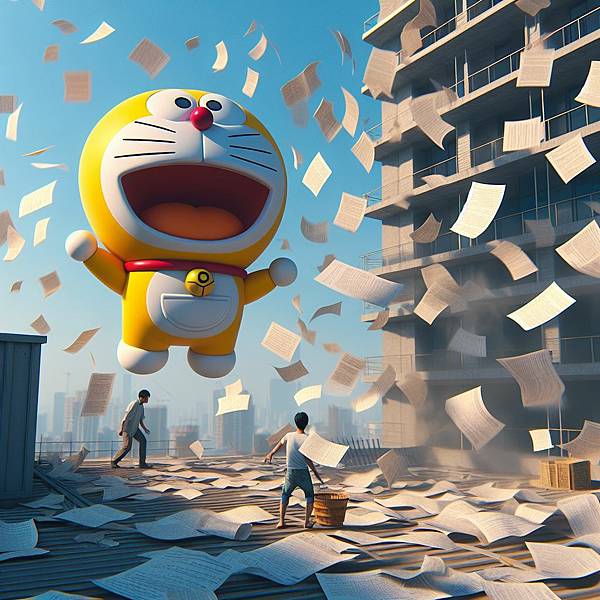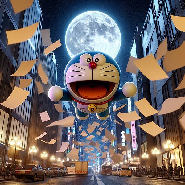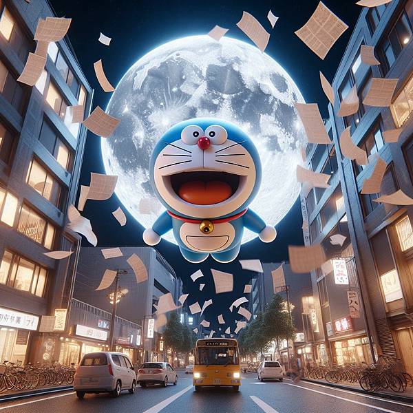 我發現,如果直接下關鍵字要哆啦A夢飛在空中,出來的圖都只會在地上。