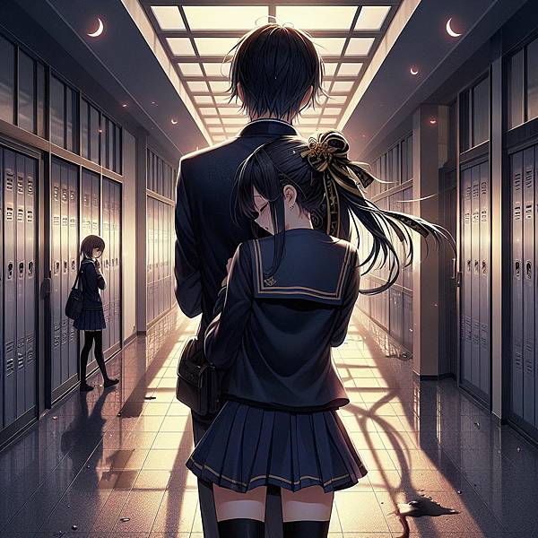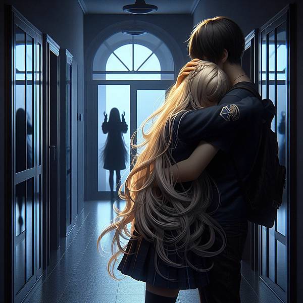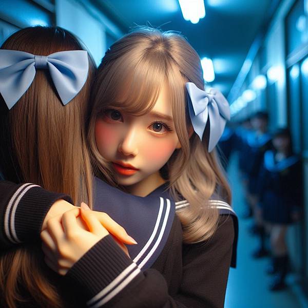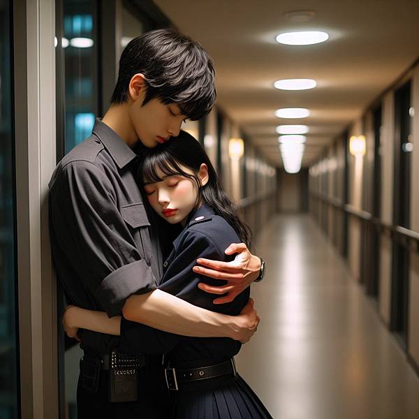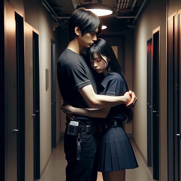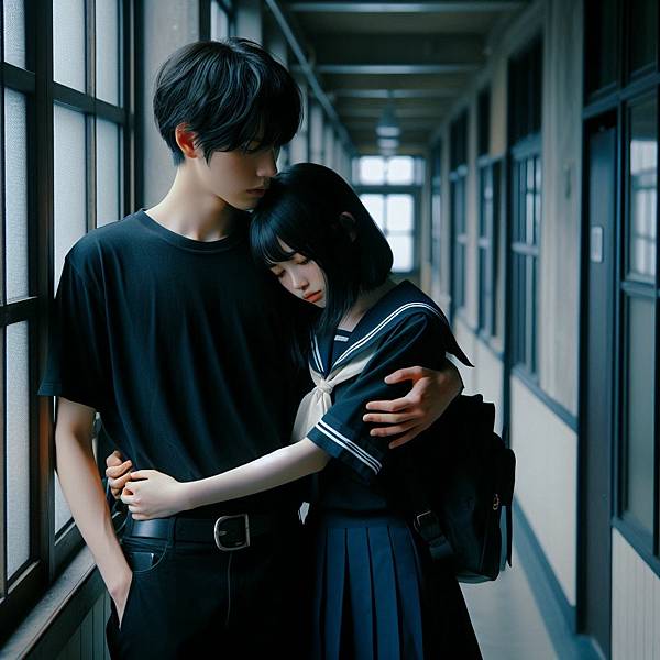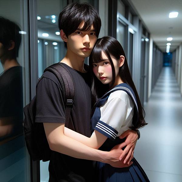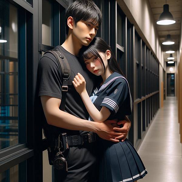 這次是男人整個躲去背後抱了,女孩看起來很哀怨。