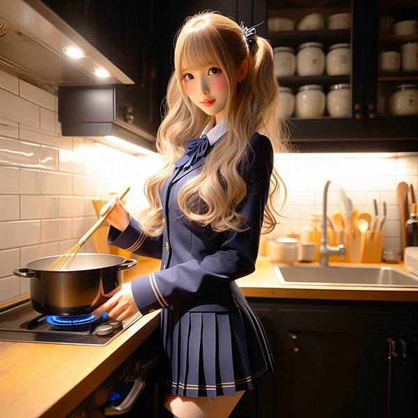 這是經歷產製大量素材殘渣之後,學習新指令後的第一張圖。意境直接就對了,只是我忘記要調整女孩服裝顏色。
