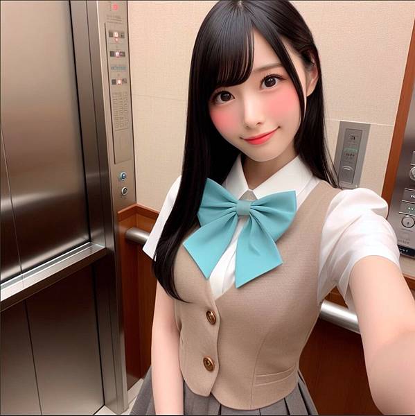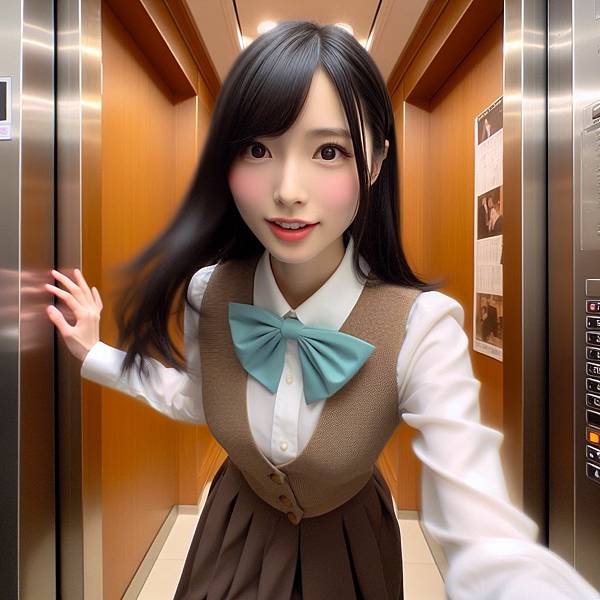 她進了電梯後,隨即給了我一個笑臉,並向我搭話。