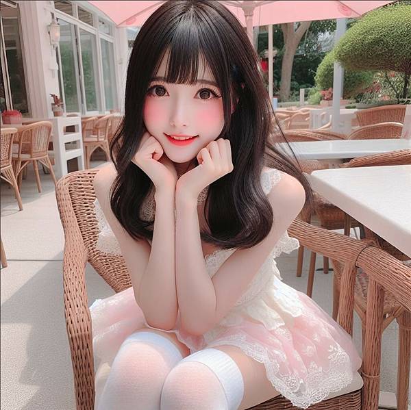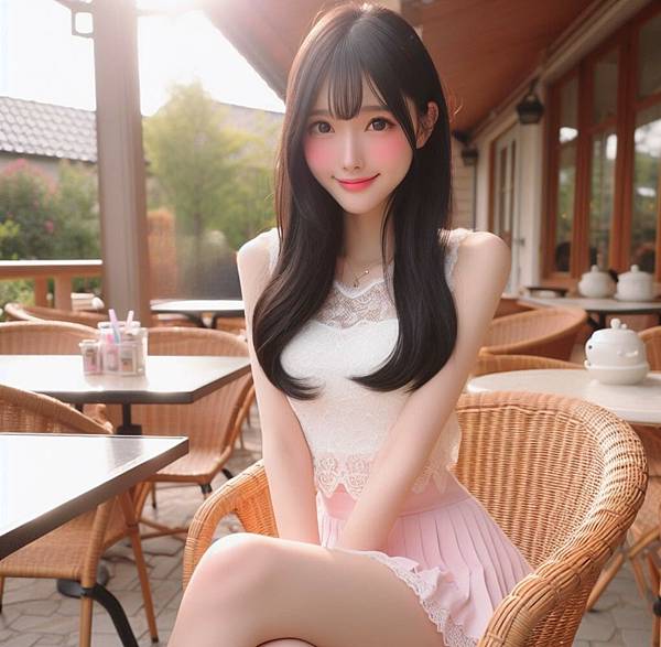我來到的指定的咖啡廳,發現她已經到了,而且換上了一身甜美可愛的裝扮。