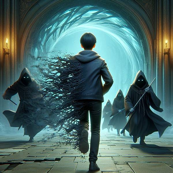 我聽聞到追兵的腳步聲回來了,便再次邁向腳步逃向門口。