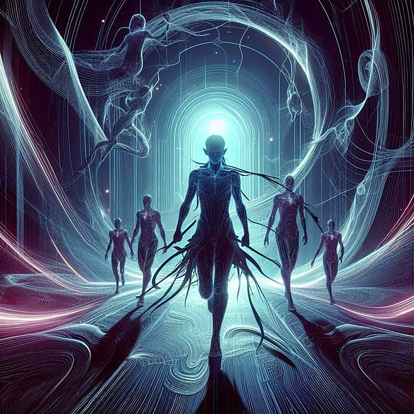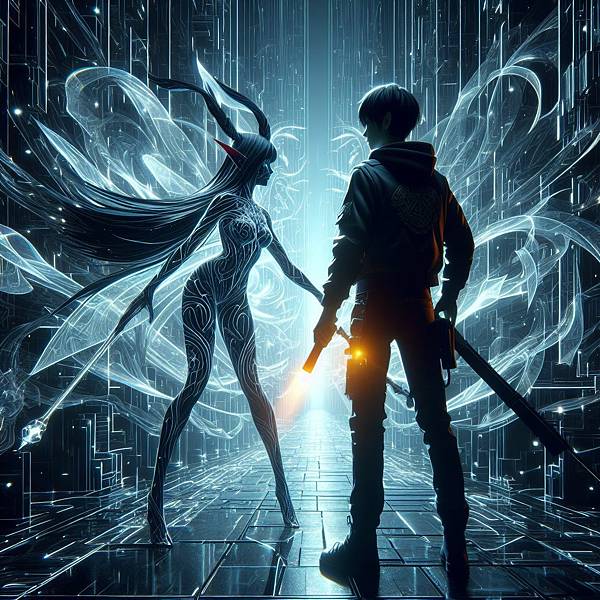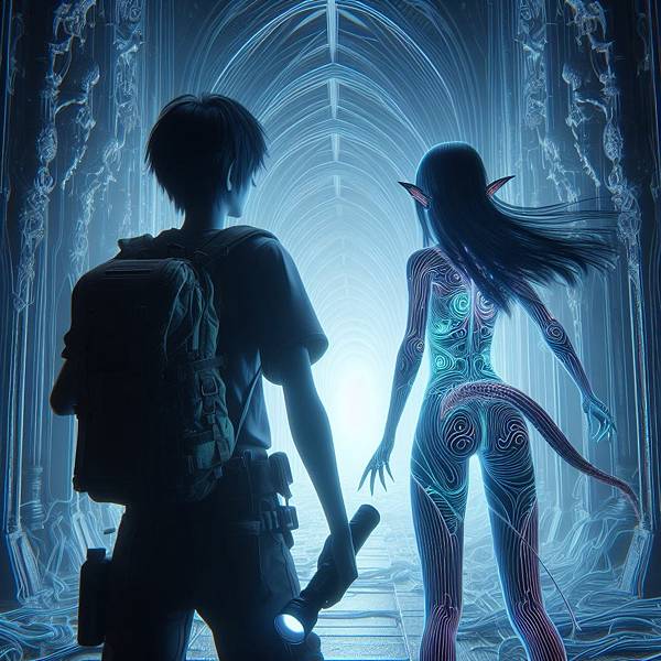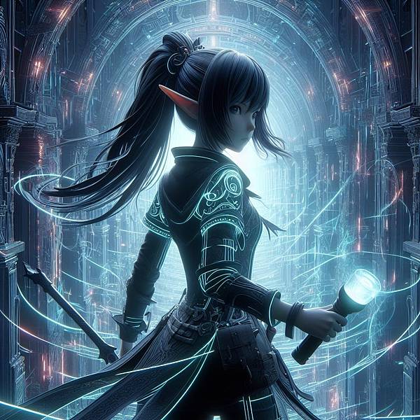 我繼續向前跑了一陣,不知何時,身邊多了一個長髮的女影精靈,同樣全身發光,但似乎不是全息影像。
