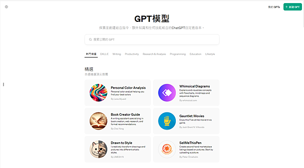 訂閱後,一開始都會被GPT詢問要如何量身訂做自己的GPT模型需求,如果你選擇公開,基本上就能在這個地方被搜尋到。