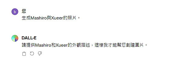 接下來我開了新聊天,並且沒有做任何前提資訊告知,直接要求生成兩人的照片。