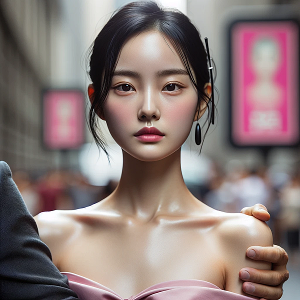 例:[Xueer的表情改成疑惑、Xueer改成與一個男人的手arm in arm、視線改成看著男人]。