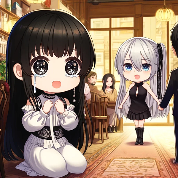自己心心念念的他,身邊有個綁銀白雙馬尾的女人在糾纏不清。那個女的也靠得太近了吧?沒看到他感到很困擾嗎?為什麼他不推開那個女的呢?