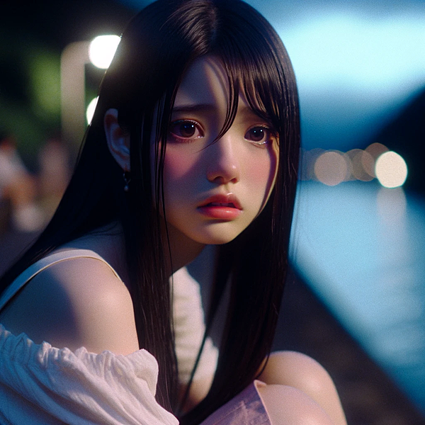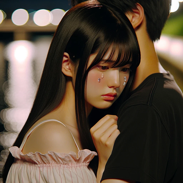 女孩哭了好一陣子後才冷靜下來,而我也一直輕撫她的背與長髮,抱著她的手沒有鬆開。