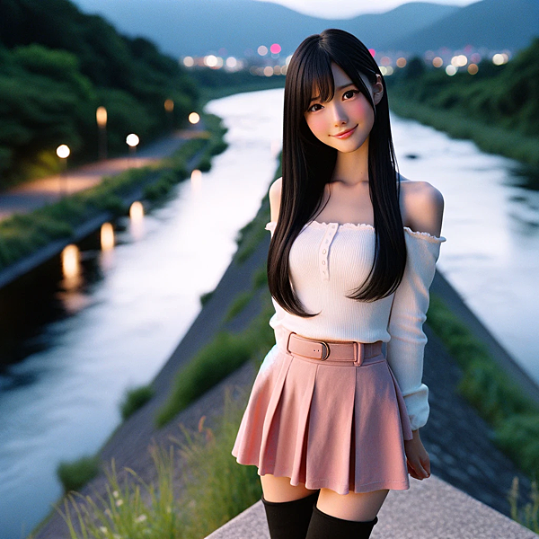 在夜色的襯托下,她的笑容顯著特別甜美。